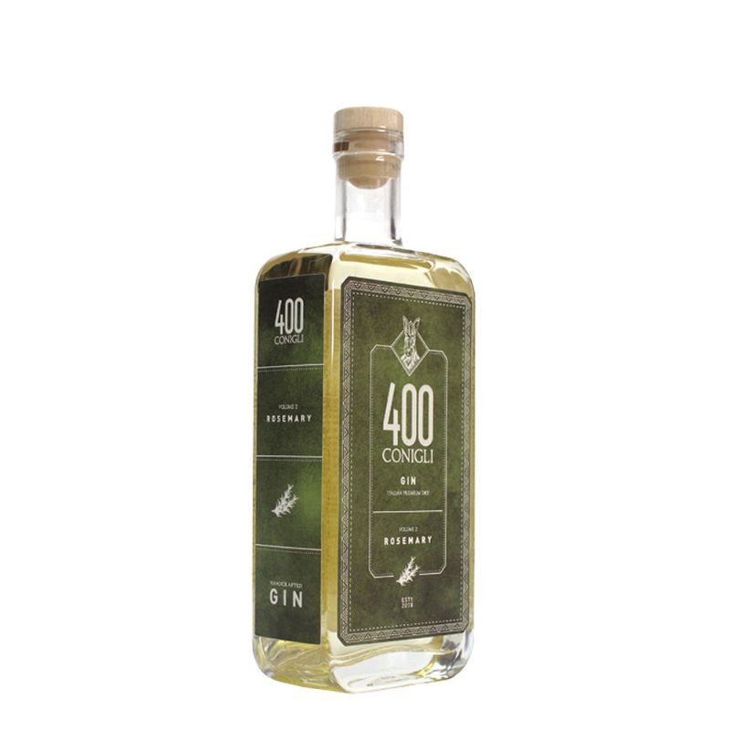 “400 Conigli Rosmarino” è un gin italiano realizzato in compound, frutto di un’infusione di rosmarino essiccato, in distillato di ginepro. Il mix di due tipologie di rosmarino sono la base del prodotto, che non subisce alcuna aggiunta di essenze o aromatizzanti chimici. Lo stesso distillato di ginepro è il risultato dell’estrazione aromatica da frutti di ginepro in infusione in alcol di cerali. La volontà del suo creatore è quella di mettere a disposizione di bartender ed appassionati prodotti unici per la miscelazione e per la sperimentazione di nuovi cocktail.