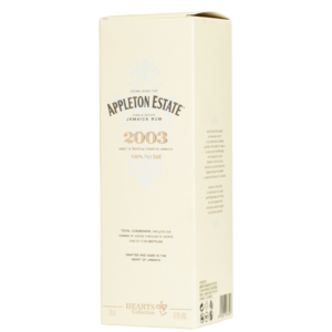 “Appleton Estate 2003 | Hearts Collection” è l’ultimo pure single rum selezionato da Luca Gargano e Joy Spence dopo il grande successo delle release del 2020. Un vintage pot still distillato in alambicco Forsyth nel 2003, invecchiato in Giamaica, in clima tropicale, in botti di rovere americano e imbottigliato nel 2021. È stato prodotto in 5000 bottiglie.